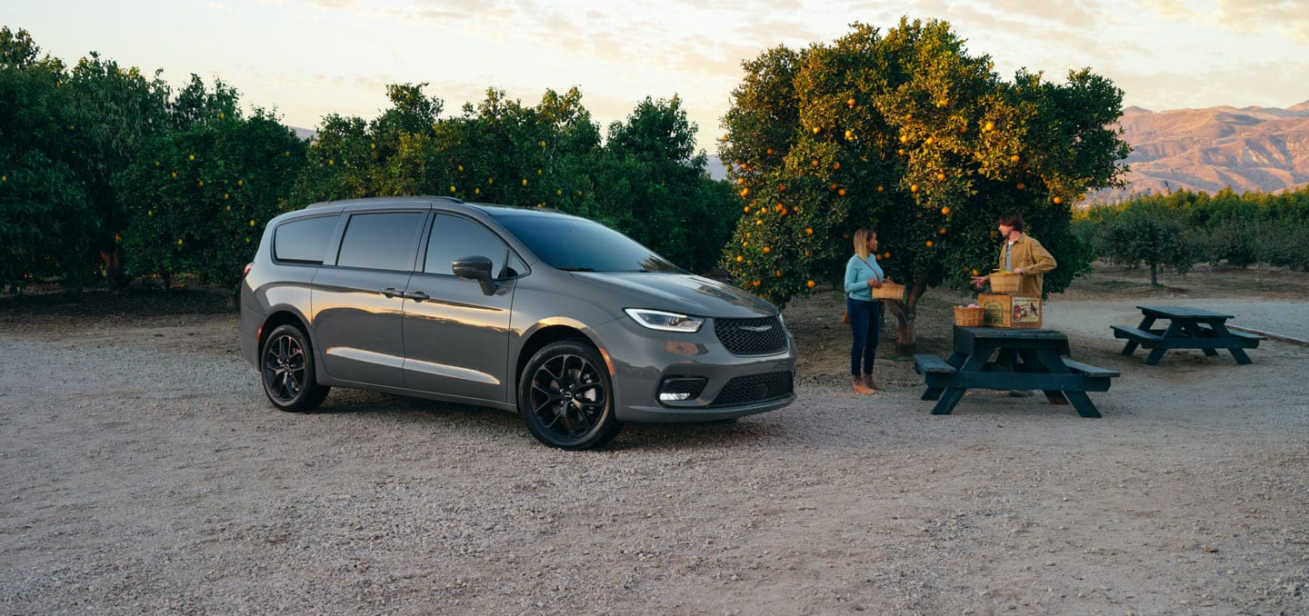 The Chrysler Pacifica features bold exterior styling with eye-catching chrome accents on the Pinnacle and appealing black accents on models with the S Appearance Package combined with standard LED headlamps that offer a sleek and stylish look.