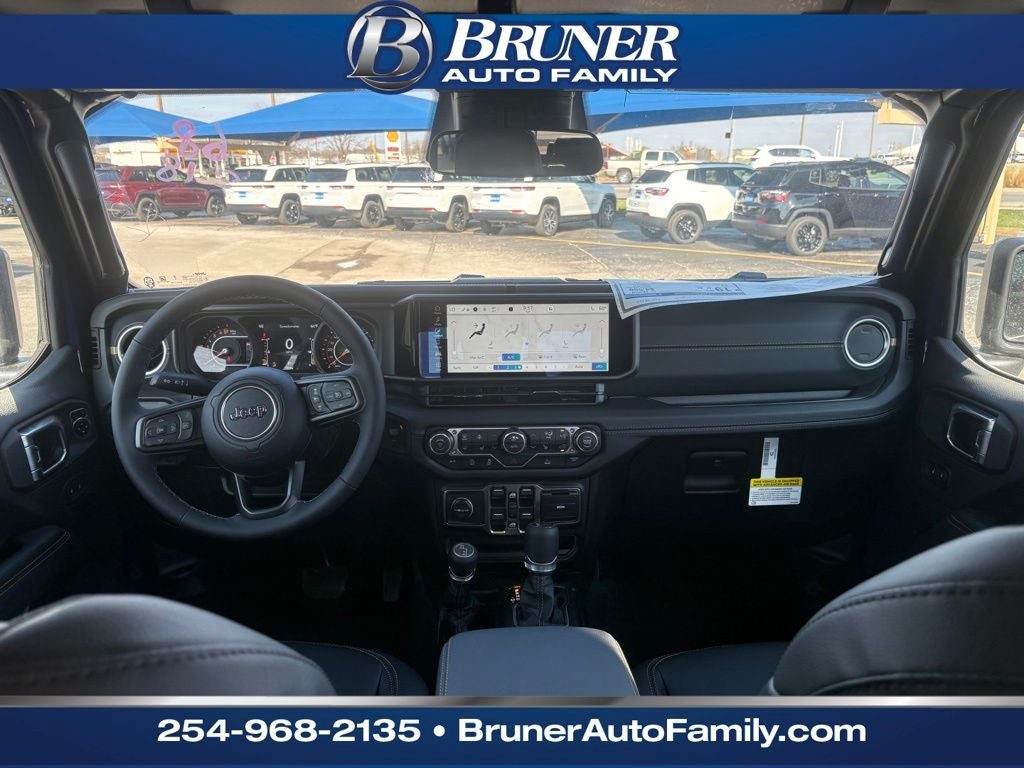 Convenience Group: Emergency/Assistance Call; Front Door Locks 2-Door Passive Entry; Remote Start System; Cluster 7.0" TFT Color Display; Universal Garage Door Opener; Daytime Running Lamp System; Heated Front Seats; Air Conditioning W/Auto Temp Control; Heated Steering Wheel; Corning Gorilla Glass. Quick Order Package 24J Texas Trail: Leather Wrapped Shift Knob; Premium Door Trim Panel; Side Steps; LT255/75R17C Tires; Power 4-Way Passenger Lumbar Adjust; Power 4-Way Driver Lumbar Adjust; Body Color Fender Flares (2-Piece); Power Adjust 8-Way Front Passenger Seat; Security Alarm; Rear Armrest W/Cupholder Seat; Hard Seat Back; Advanced Brake Assist; Willys Suspension; Body Color 3-Piece Hard Top; Texas Trail; Automatic Headlamps; 5. 950 lbs GVWR; Deep Tint Sunscreen Windows; 17" X 7.5" Painted Black Wheels; Central ADAS Decision Module (CADM); Premium McKinley Trimmed Seats; Full Speed Forward Collision Warning Plus; Power Heated Mirrors; Daytime Running Lamp System; Power Adjust 8-Way Driver Seat; Full Length Floor Console Premium Armrest; Premium Wrapped Steering Wheel; Leather Wrapped Park Brake Handle; Sun Visors W/Illuminated Vanity Mirrors; Texas Trail Tailgate & Hood Decals. LED Headlamp & Fog Lamp Group: Daytime Running Lamps LED Accents; Front LED Fog Lamps; LED Premium Reflector Headlamps. Reign. MOPAR All-Weather Slush Mats. **Equipment listed is based on original vehicle build and subject to change. Please confirm the accuracy of the included equipment by calling the dealer prior to purchase.**