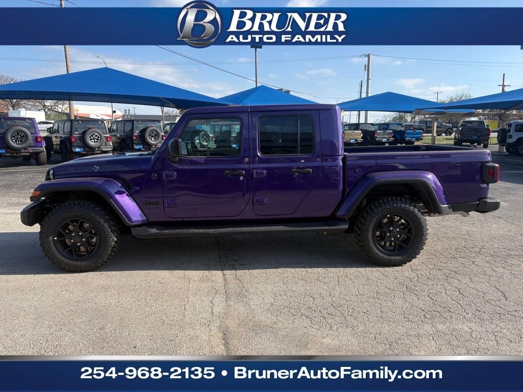 2026 Jeep Gladiator Texas Trail - 4WD, V6 3.6L, Stephenville TX. Built for adventure and daily comfort, this Jeep Gladiator Texas Trail blends rugged capability with refined features at the best price in the area. The 4WD system and proven 3.6L V6 gasoline engine deliver confident towing and off-road performance, while modern safety and convenience tech keep every drive enjoyable. Inside, premium leather seats and automatic climate control provide year-round comfort for driver and passengers. The heated steering wheel adds winter-ready warmth, and intuitive Android Auto keeps your favorite apps, navigation, and music seamlessly integrated on the go. Forward Collision Warning enhances peace of mind with advanced driver-assist technology designed to help you stay safer on highways and back roads. This Jeep Gladiator Texas Trail is perfectly suited for Texans who demand capability without sacrificing comfort-camping, worksite duty, or weekend trails are all within reach. With a robust V6 under the hood, smooth shifting automatic transmission, and a confident 4WD system, this Jeep is prepared for Stephenville terrain and long highway runs alike. Located in Stephenville, TX, this Jeep Gladiator Texas Trail offers exceptional value and the best price available-act now to secure a versatile, well-equipped truck that stands out in capability, comfort, and safety. Contact today to schedule a test drive and experience the capability firsthand.