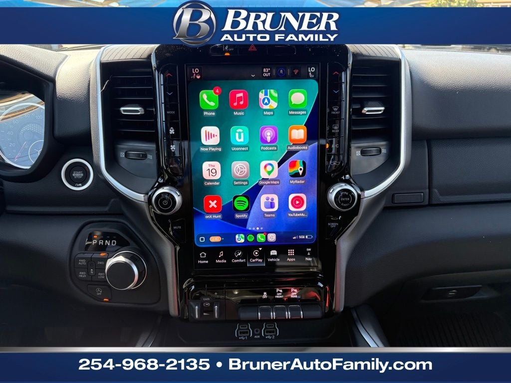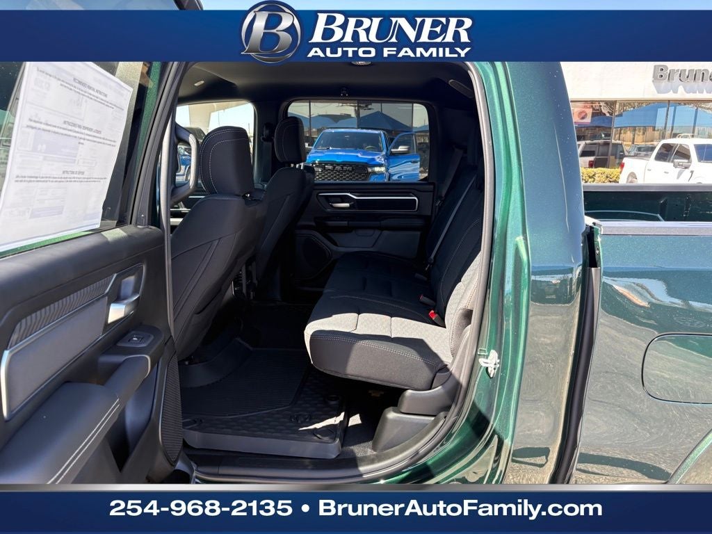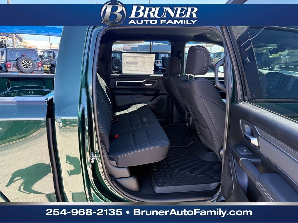 Big Horn Level 2 Equipment Group: Google Android Auto; SiriusXM Radio Service; USB Host Flip; Power Adjustable Pedals; Leather Wrapped Steering Wheel; Integrated Voice Command with Bluetooth®; 12" Touchscreen Display; Glove Box Lamp; Auto Power-Folding Mirrors; 115V Auxiliary Rear Power Outlet; Media Hub with 2 Charge Only USBs; Heated Front Seats; Security Alarm; Black Premium Power Mirrors; Apple CarPlay; Premium Overhead Console; 9 Amplified Speakers with Subwoofer; Disassociated Touchscreen Display; Body Color Fender Flares; Remote Tailgate Release; 115V Auxiliary Power Outlet; LED Dome Lamp with On/off Switch; Universal Garage Door Opener; 2nd Row in Floor Storage Bins; Sun Visors with Illuminated Vanity Mirrors; LED Footwell Lighting; Rear Window Defroster; Integrated Center Stack Radio; Rear View Auto Dim Mirror; Rear Power Sliding Window; Connectivity - US/Canada; GPS Navigation; 4G LTE Wi-Fi Hot Spot; GPS Antenna Input; Overhead LED Lamps; Exterior Mirrors with Heating Element; Auto Dim Exterior Driver Mirror; SiriusXM with 360L; Global Telematics Box Module; Connected Travel and Traffic Services; Heated Steering Wheel; Configurable Drive Mode; 400W Inverter; HD Radio; Deluxe Cloth Bucket Seats; Uconnect 5 Navigation with 12.0" Display Radio; Exterior Mirrors with Supplemental Signals; Steering Wheel Mounted Audio Controls; Exterior Mirrors Courtesy Lamps; Air Conditioning ATC with Dual Zone Control; Cluster 7.0" TFT Color Display; Convex Wide-Angle Exterior Mirror Insert. Quick Order Package 27R Lone Star: Lone Star Badge. Night Edition: 275/55R20 OWL All Season Tires; Accent Color Premium Power Mirrors; Exterior Mirrors with Supplemental Signals; Black Headlamp Bezels; Exterior Mirrors Courtesy Lamps; Grille Black Surround Black Mesh; Auto Power-Folding Mirrors; Exterior Mirrors with Heating Element; 20" X 9.0" Aluminum Painted Clad Wheels; Auto Dim Exterior Driver Mirror; Black Exterior Truck Badging; Anti-Spin Differential Rear Axle; Accent Color Door Handles; Accent Color Tailgate Handle; Black Interior Accents; Dual Exhaust with Black Tips; Body Color Front Bumper; Convex Wide-Angle Exterior Mirror Insert; Body Color Rear Bumper with Step Pads; Black Tail Lamp Bezels; RAM Grille Badge - Black; Black Painted Exterior Mirrors Caps. Quick Order Package 23R Lone Star: Lone Star Badge. 9 Amplified Speakers with Subwoofer. MOPAR Black Tubular Side Steps. Anti-Spin Differential Rear Axle. Trailer Brake Control. Serrano Green Metallic. MOPAR Front and Rear Rubber Floor Mats. 3.92 Rear Axle Ratio. **Equipment listed is based on original vehicle build and subject to change. Please confirm the accuracy of the included equipment by calling the dealer prior to purchase.**
