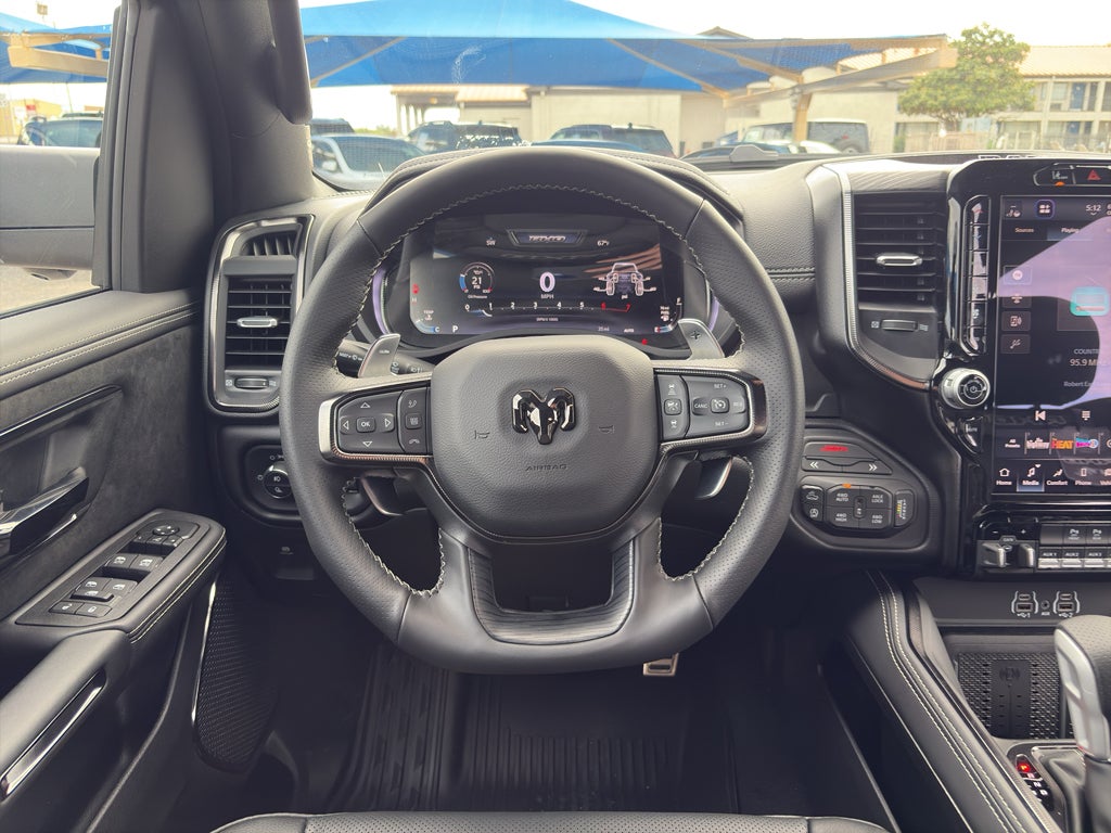 The installed navigation system will keep you on the right path. This 2026 Ram 1500 offers Apple CarPlay for seamless connectivity. Bluetooth® technology is built into it, keeping your hands on the steering wheel and your focus on the road. Never get into a cold vehicle again with the remote start feature on this vehicle. This vehicle has auto-adjust speed for safe following. This 1/2 ton pickup offers Android Auto for seamless smartphone integration. It's Forward Collision Warning feature alerts drivers to potential front-end collisions. The leather seats in this unit are a must for buyers looking for comfort, durability, and style. Protect this unit from unwanted accidents with a cutting edge backup camera system. Keep your hands warm all winter with a heated steering wheel in the vehicle . An off-road package is equipped on this 2026 Ram 1500 . This model has a 6 Cyl, 3.0L high output engine.