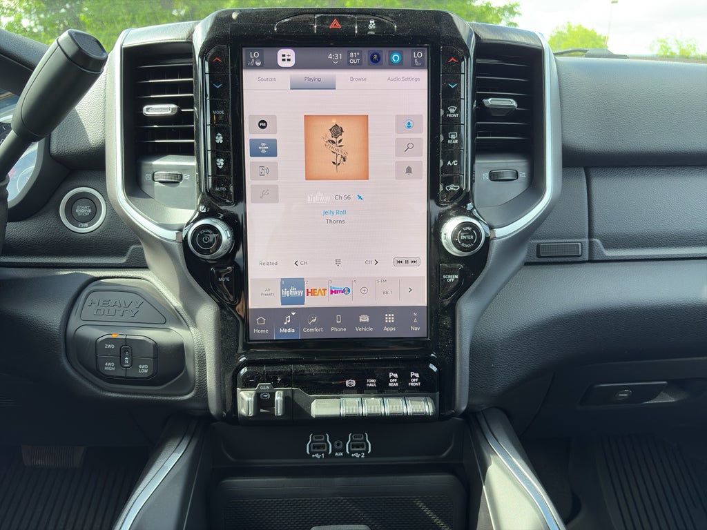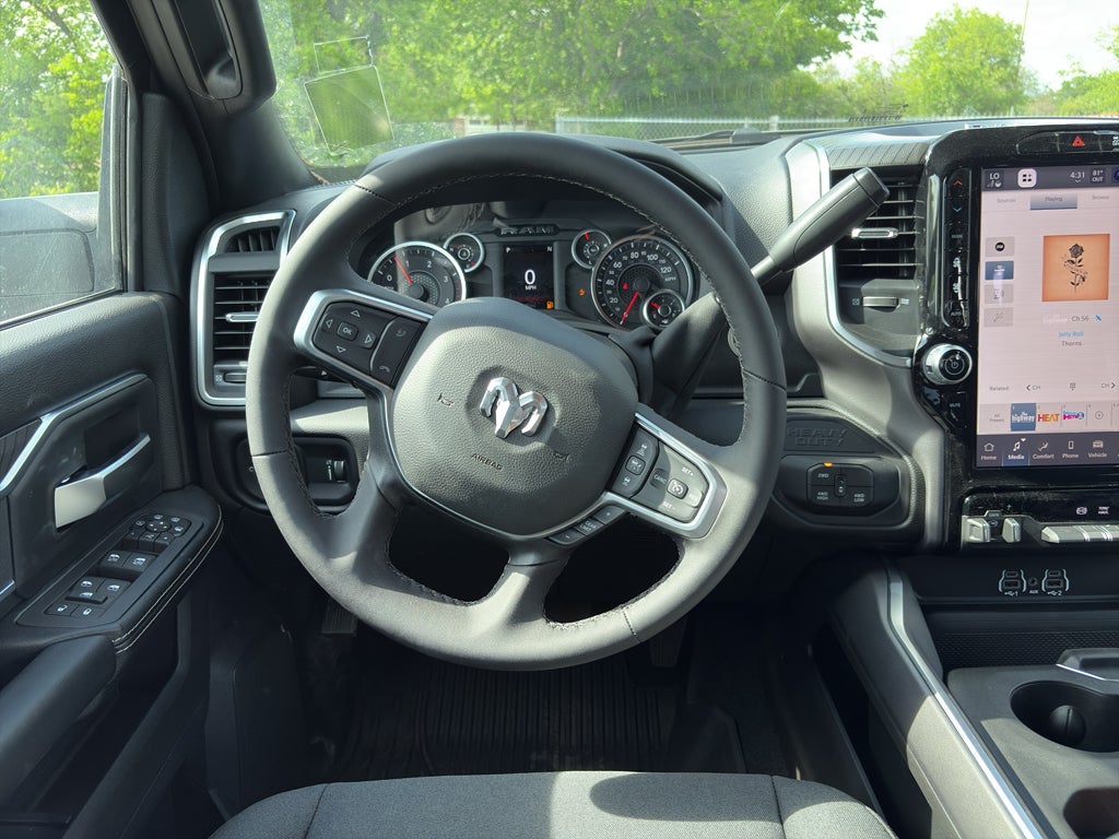 Quick Order Package 24Y Lone Star: Lone Star Badge. Night Edition: Firestone Brand Tires; Gloss Black Nostrils/mic Black Grille; LT285/60R20E OWL On/off Road Tires; Black Exterior Truck Badging; 20" X 8.0" Black Painted Aluminum Wheels; Body Color Grille-Surround; Black Interior Accents; Black Wheel Center Hub; Painted Front Bumper; Painted Rear Bumper. Big Horn Level 1 Plus Equipment Group: Google Android Auto; SiriusXM Radio Service; For Details. Visit DriveUconnect.com; For More Info. Call 800-643-2112; Integrated Voice Command with Bluetooth®; Emergency Vehicle Alert System (EVAS); Lone Star Instrument Panel Badge; 12" Touchscreen Display; Glove Box Lamp; Auto Power-Folding Mirrors; Footwell Courtesy Lamp; Anti-Spin Differential Rear Axle; Mirror Running Lights; MOPAR Deployable Bed Step; Alexa Built-In; Apple CarPlay; Power-Adjustable Convex Aux Mirrors; Forward and Reverse Utility Lights; Locking Lower Glove Box; Remote Start System; 9 Alpine Speakers with Subwoofer; Disassociated Touchscreen Display; Dual Glove Boxes; 2nd Row in Floor Storage Bins; Rear View Auto Dim Mirror; Rear Dome with On/off Switch Lamp; LED Bed Lighting; Connectivity - US/Canada; GPS Navigation; 4G LTE Wi-Fi Hot Spot; GPS Antenna Input; Exterior Mirrors with Heating Element; SiriusXM with 360L; Global Telematics Box Module; Connected Travel and Traffic Services; Foam Bottle Insert (door Trim Panel); Black Exterior Mirrors; Off-Road Info Pages; Selectable Tire Fill Alert; Trailer Tow Pages; HD Radio; Uconnect 5 Navigation with 12.0" Display Radio; Power Heated Folding Telescopic Mirrors; Exterior Mirrors with Supplemental Signals; Steering Wheel Mounted Audio Controls; Exterior Mirrors Courtesy Lamps; Air Conditioning ATC with Dual Zone Control; MOPAR Spray in Bedliner; Power Adjust Mirrors; Luxury Steering Wheel; Power Telescoping Mirrors. Heated Seats and Wheel Group: Heated Front Seats; Heated Steering Wheel. Quick Order Package 2UY Lone Star: Lone Star Badge. Painted Flat Wheel-To-wheel Side Steps. 5th Wheel/gooseneck Towing Prep Group. Anti-Spin Differential Rear Axle. Premium Cloth Bucket Seats. Remote Start System. MOPAR Front and Rear Rubber Floor Mats. Clearance Lamps. Power 2-Way Driver Lumbar Adjust. Transfer Case Skid Plate Shield. **Equipment listed is based on original vehicle build and subject to change. Please confirm the accuracy of the included equipment by calling the dealer prior to purchase.**