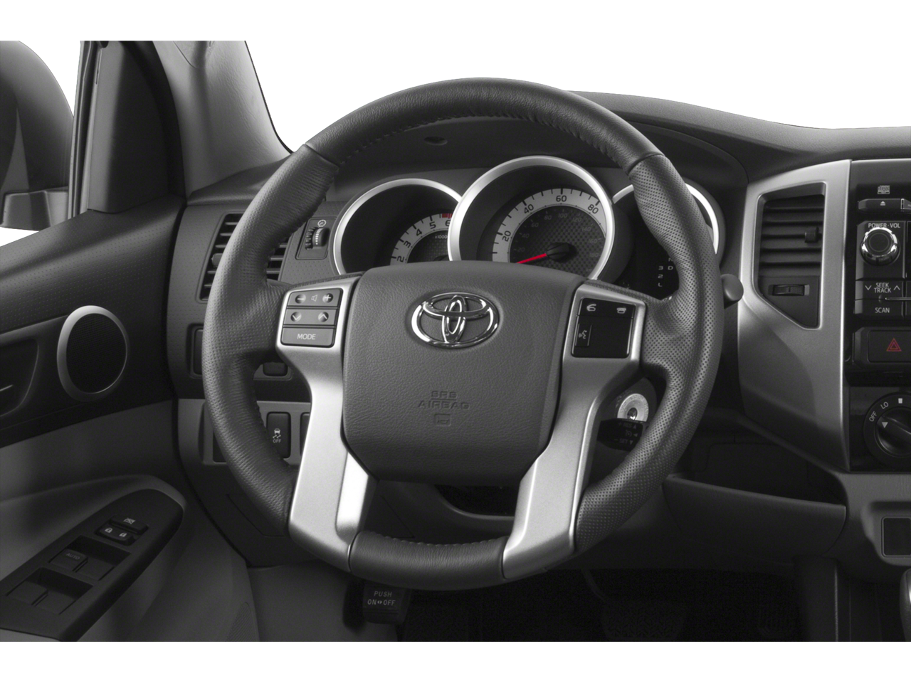 4WD, ABS brakes, Electronic Stability Control, Illuminated entry, Low tire pressure warning, Traction control, 16 x 7J+30 Style Steel Wheels, 3.727 Axle Ratio, 6 Speakers, Air Conditioning, AM/FM radio, Anti-whiplash front head restraints, Brake assist, CD player, Driver door bin, Dual front impact airbags, Dual front side impact airbags, Fabric Seat Trim, Front anti-roll bar, Front Bucket Seats, Front Center Armrest, Front reading lights, Front wheel independent suspension, Occupant sensing airbag, Overhead airbag, Overhead console, Passenger door bin, Passenger vanity mirror, Power door mirrors, Power steering, Power windows, Radio: Entune AM/FM/CD, Rear step bumper, Speed-sensing steering, Split folding rear seat, Tachometer, Telescoping steering wheel, and Tilt steering wheel.