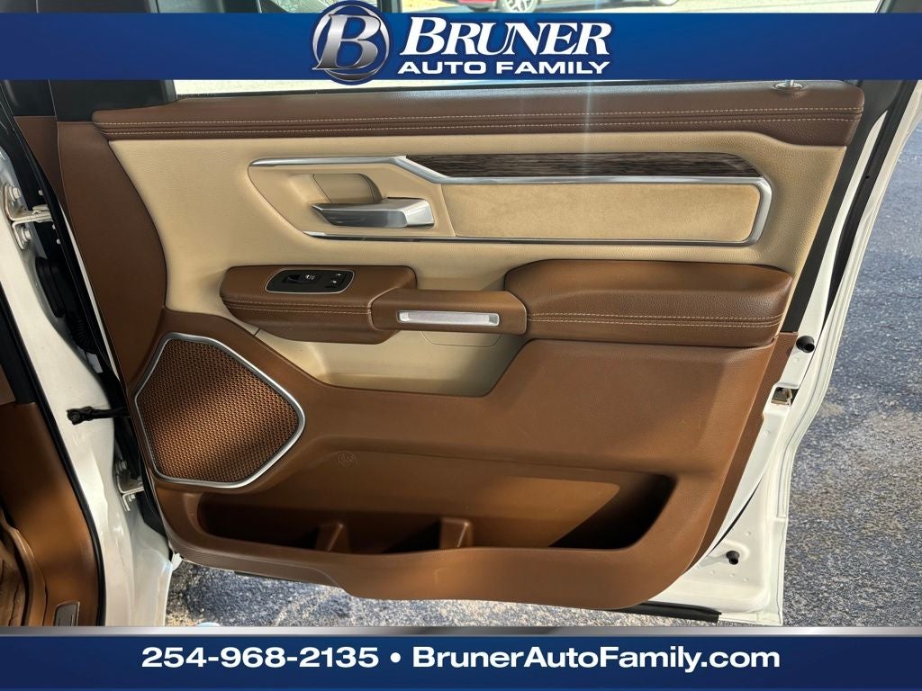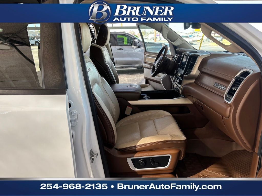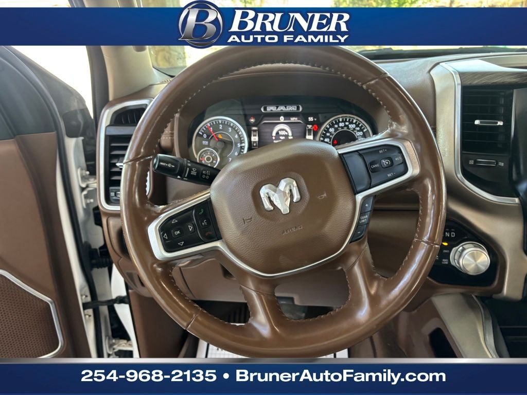 Laramie Level 1 Equipment Group, Protection Group (Tow Hooks), Quick Order Package 25H Laramie, #1 Seat Foam Cushion, 10 Speakers, 3 Rear Seat Head Restraints, 3.21 Rear Axle Ratio, 33 Gallon Fuel Tank, 4 Way Front Headrests, 4-Wheel Disc Brakes, 48V Belt Starter Generator, 8.4 Touchscreen Display, ABS brakes, Adjustable pedals, Air Conditioning, Alloy wheels, AM/FM radio: SiriusXM, Apple CarPlay, Apple CarPlay/Android Auto, Audio memory, Auto-dimming door mirrors, Auto-dimming Rear-View mirror, Automatic temperature control, Brake assist, Bumpers: chrome, Compass, Delay-off headlights, Driver door bin, Driver Seat Memory, Driver vanity mirror, Dual front impact airbags, Dual front side impact airbags, Electronic Stability Control, Front & Rear Rubber Floor Mats, Front anti-roll bar, Front Center Armrest w/Storage, Front dual zone A/C, Front fog lights, Front reading lights, Front Seat Back Map Pockets, Front wheel independent suspension, Fully automatic headlights, Garage door transmitter, Google Android Auto, GPS Antenna Input, Heated door mirrors, Heated Front Seats, Heated front seats, Heated Steering Wheel, Heated steering wheel, Illuminated entry, Integrated Center Stack Radio, Leather steering wheel, Leather Trim 40/20/40 Bench Seat, Low tire pressure warning, Memory seat, Occupant sensing airbag, Outside temperature display, Overhead airbag, Overhead console, Panic alarm, ParkSense Front/Rear Park Assist w/Stop (DISC), ParkView Rear Back-Up Camera, Passenger door bin, Passenger vanity mirror, Pedal memory, Power 4-Way Driver Lumbar Adjust, Power 4-Way Passenger Lumbar Adjust, Power 8-Way Driver & Passenger Seats, Power door mirrors, Power driver seat, Power passenger seat, Power steering, Power windows, Radio data system, Radio: Uconnect 4 w/8.4 Display, Rear anti-roll bar, Rear seat center armrest, Rear step bumper, Rear window defroster, Remote keyless entry, Security system, SiriusXM Satellite Radio, Speed control, Split folding rear seat, Steering wheel mounted audio controls, Tachometer, Telescoping steering wheel, Tilt steering wheel, Traction control, Trip computer, Turn signal indicator mirrors, Variably intermittent wipers, Ventilated Front Seats, Ventilated front seats, Voltmeter, Wheels: 18 x 8 Aluminum Base Painted, and Wheels: 20 x 9 Premium Paint/Polished.