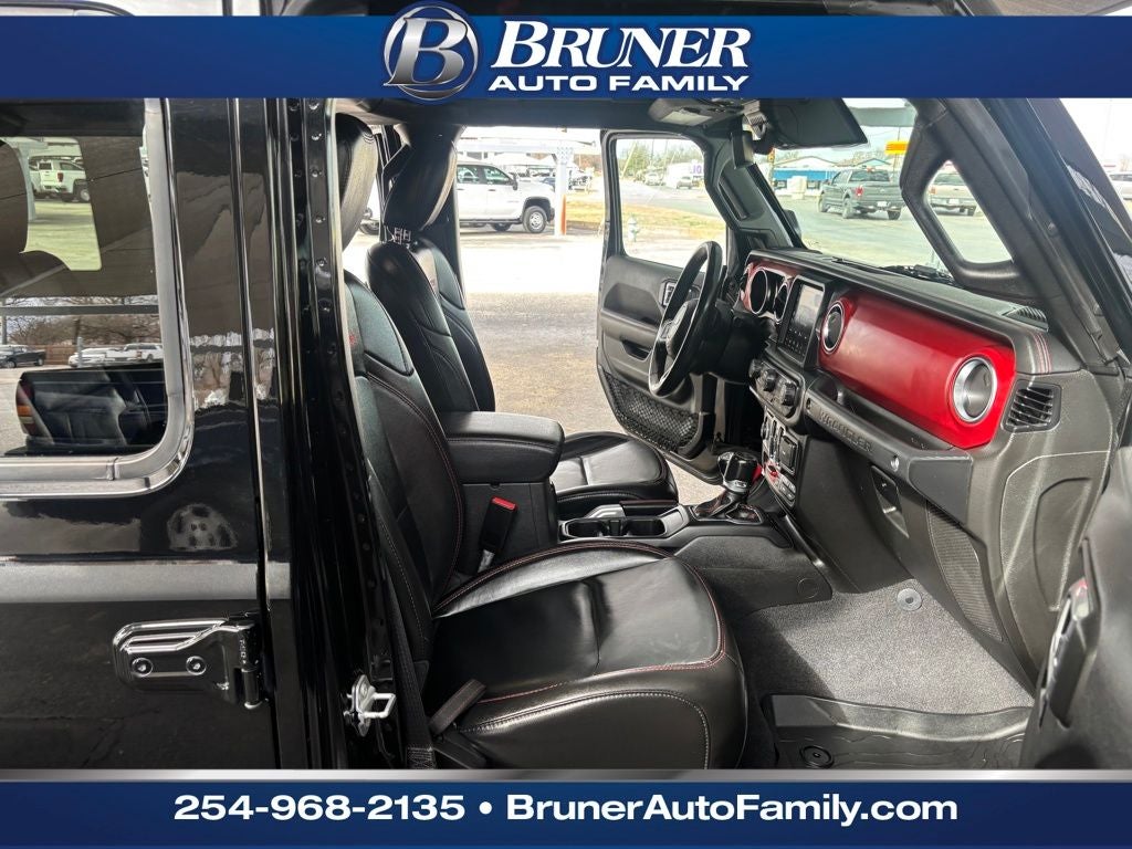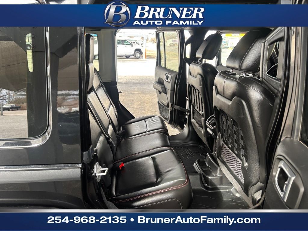 Safety Group (Blind Spot & Cross Path Detection and ParkSense Rear Park Assist System), 8.4 Radio & Premium Audio Group (GPS Navigation, 1-Year SiriusXM Guardian Trial, 4G LTE Wi-Fi Hot Spot, 5-Year SiriusXM Traffic Service, 5-Year SiriusXM Travel Link Service, 8.4 Touchscreen Display, Alpine Premium Audio System, Auto-Dimming Rear-View Mirror, Emergency/Assistance Call, For Details, Visit DriveUconnect.com, HD Radio, Off-Road Info Pages, Radio: Uconnect 4C Nav w/8.4 Display, SiriusXM Traffic Plus, and SiriusXM Travel Link), Advanced Safety Group (Full Speed Forward Collision Warning Plus, Advanced Brake Assist, and Auto High Beam Headlamp Control), LED Lighting Group (Daytime Running Lamps LED Accents, Front LED Fog Lamps, LED Premium Reflector Headlamps, and LED Taillamps), Quick Order Package 26R, Trailer Tow & HD Electrical Group (240 Amp Alternator, 7 & 4 Pin Wiring Harness, 700 Amp Maintenance Free Battery, Auxiliary Switches, and Class II Receiver Hitch), Apple CarPlay/Android Auto, Power Top Quarter Window Storage Bag, Rear Window Defroster, Rear Window Wiper/Washer, Remote keyless entry, Removable Rear Quarter Windows, Sky 1-Touch Power Top, 4-Wheel Disc Brakes, 8 Speakers, ABS brakes, Air Conditioning, Alloy wheels, AM/FM radio: SiriusXM, Automatic temperature control, Aux Battery, Brake assist, Compass, Delay-off headlights, Driver door bin, Driver vanity mirror, Dual front impact airbags, Dual front side impact airbags, Electronic Stability Control, Front anti-roll bar, Front Bucket Seats, Front Center Armrest w/Storage, Front dual zone A/C, Front fog lights, Front License Plate Bracket, Front reading lights, Fully automatic headlights, Garage door transmitter, Heated door mirrors, Heated Front Seats, Illuminated entry, Integrated Off-Road Camera, Integrated roll-over protection, Leather steering wheel, Leather Trimmed Bucket Seats, Leather Wrapped Park Brake Handle, Leather Wrapped Shift Knob, Low tire pressure warning, MOPAR All-Weather Floor Mats (DISC), MOPAR Upper Body Side Graphic, Non-Lock Fuel Cap w/o Discriminator, Occupant sensing airbag, Outside temperature display, Panic alarm, ParkView Rear Back-Up Camera, Passenger door bin, Passenger vanity mirror, Performance Suspension, Power door mirrors, Power steering, Power windows, Premium Cloth Low-Back Bucket Seats, Premium Door Trim Panel, Radio data system, Radio: Uconnect 4 w/7 Display, Rear anti-roll bar, Rear reading lights, Remote Proximity Keyless Entry, Remote Start System, Security system, Speed control, Split folding rear seat, Steering wheel mounted audio controls, Stop-Start Dual Battery System, Tachometer, Telescoping steering wheel, Tilt steering wheel, Traction control, Trip computer, Variably intermittent wipers, Voltmeter, Wheels: 17 x 7.5 Black w/Machined Lip, and Wheels: 17 x 7.5 Machined w/Black PocketS.