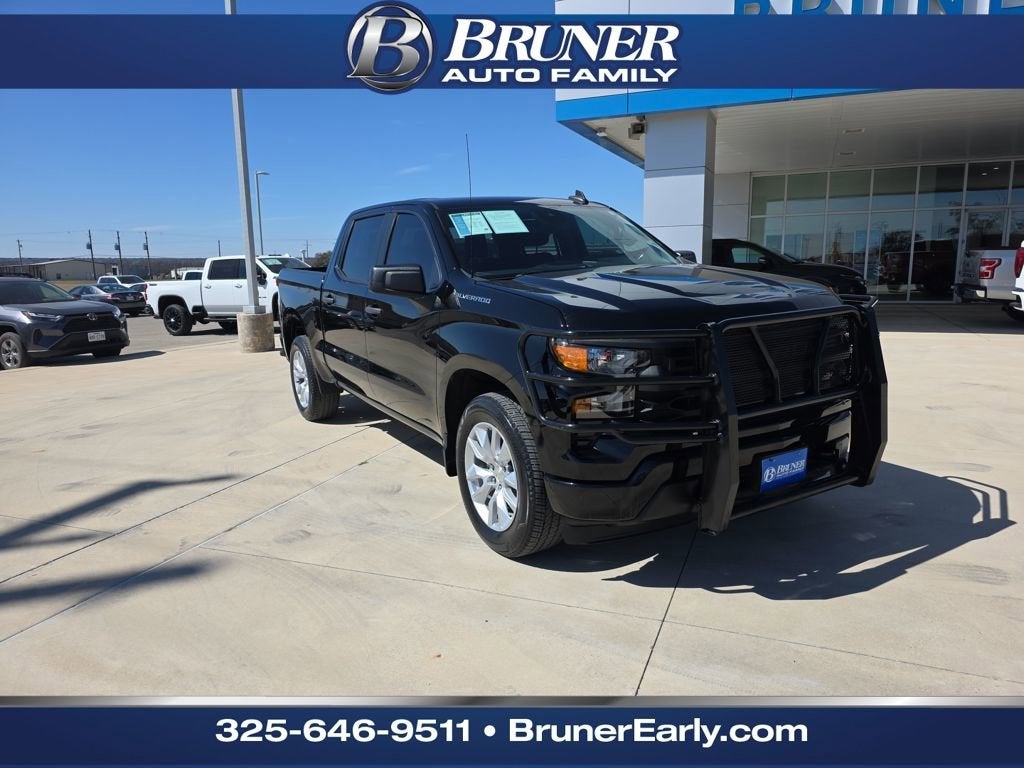 2022 Chevrolet Silverado 1500 Custom - Ready for BrownwoodThis 2022 Chevrolet Silverado 1500 Custom in sleek Black is the perfect blend of modern efficiency and classic Chevy toughness. Whether you are hauling gear to Lake Brownwood or navigating the daily commute through Central Texas, this Crew Cab offers the space and reliability you need. Powered by the innovative 2.7L Turbo engine paired with an 8-speed automatic transmission, you get surprising towing capability without sacrificing fuel economy.Key Vehicle HighlightsPerformance: High-output 2.7L Turbo engine with RWD efficiency.Interior: Spacious Black Cloth 40/20/40 split-bench front seat and 60/40 folding rear bench.Technology: Chevrolet Infotainment 3 system with Apple CarPlay and Android Auto wireless projection.Safety: Equipped with Chevy Safety Assist, including Automatic Emergency Braking, Lane Keep Assist, and Forward Collision Alert.Utility: Features the EZ Lift Power Lock & Release Tailgate, 120-volt bed-mounted power outlet, and the Trailering Package with Hitch Guidance.Local Brownwood SEO Optimized DescriptionLooking for a dependable truck in Brownwood, Texas? This 2022 Chevrolet Silverado 1500 Custom is the ideal choice for drivers in Brown County. From the ranch to the job site, this Silverado is built to handle the Texas heat and terrain.At Bruner Auto Group, we understand what Texas drivers need. This Silverado 1500 features a Black exterior that looks sharp on the road and a Crew Cab configuration that ensures your passengers stay comfortable. With only 40,486 miles, this truck is just getting started. If you're searching for a used Silverado near me or a reliable pickup in Brownwood, look no further. This vehicle has passed a detailed inspection and is ready for its next owner.Features & Equipment List (Copy/Paste for vAuto)Custom Features & Packages:Custom Convenience Package, Custom Value Package, Trailering Package, High Capacity Suspension Package.Interior & Technology:10-Way Power Driver Seat w/Lumbar, Remote Vehicle Starter System, 120-Volt Instrument Panel Power Outlet, 6-Speaker Audio System, SiriusXM Radio, Wi-Fi Hot Spot Capable, Rear Rubberized-Vinyl Floor Mats, Color-Keyed Carpeting.Safety & Exterior:Auto High-beam Headlights, HD Rear Vision Camera, Theft Deterrent System, Heated door mirrors, Rear step bumper, 20 Bright Silver Painted Aluminum Wheels, Deep-Tinted Glass, Front Frame-Mounted Black Recovery Hooks.Why Buy This Silverado?This truck isn't just about looks; it's about functionality. The Multi-Flex Tailgate (if equipped) and the Spray-On Bedliner make it a workhorse, while the Remote Start and Dual-Zone Climate Control cues ensure you're comfortable before you even climb inside.Visit us today in Brownwood, TX to test drive this incredible 2022 Chevrolet Silverado 1500 Custom. Our team at Bruner Auto Group is ready to help you get behind the wheel of your next favorite truck.