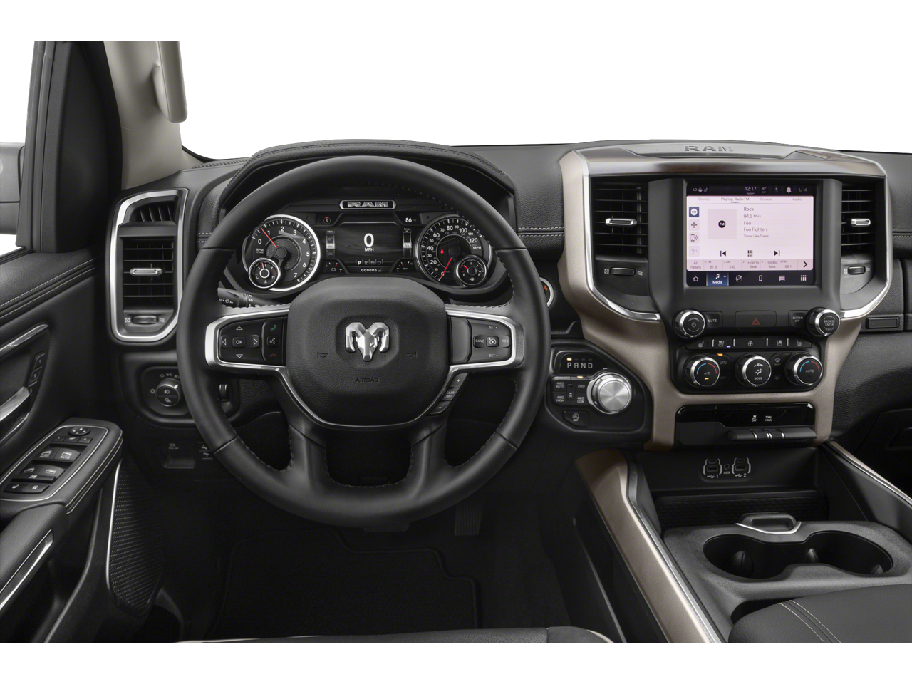 Laramie Level II Equipment Group (2nd Row In Floor Storage Bins, 4G LTE Wi-Fi Hot Spot, 8.4 Touchscreen Display, All R1 High Radios, All Radio Equipped Vehicles, Apple CarPlay, Auto High Beam Headlamp Control, Blind Spot & Cross Path Detection, Connected Travel & Traffic Services, Connectivity - US/Canada, Disassociated Touchscreen Display, Foam Bottle Insert (Door Trim Panel), For Details, Visit DriveUconnect.com, For More Info, Call 800-643-2112, Global Telematics Box Module (TBM), Google Android Auto, GPS Antenna Input, GPS Navigation, harman/kardon 19 Speaker Premium Sound, HD Radio, Integrated Center Stack Radio, Integrated Voice Command w/Bluetooth®, ParkSense Front/Rear Park Assist w/Stop, Radio: Uconnect 5 Nav w/8.4 Display, Rain Sensitive Windshield Wipers, Remote Tailgate Release, SiriusXM Radio Service, SiriusXM w/360L, USB Host Flip, and Wireless Charging Pad), Night Edition (#1 Seat Foam Cushion, 3 Rear Seat Head Restraints, 4 Way Front Headrests, Accent Color Premium Power Mirrors, Anti-Spin Differential Rear Axle, Auto-Dimming Exterior Driver Mirror, Black Exterior Truck Badging, Black Headlamp Bezels, Black Interior Accents, Black Painted Exterior Mirrors Caps, Body Color Door Handles, Body Color Front Bumper, Body Color Rear Bumper w/Step Pads, Bucket Seats, Convex Wide-Angle Mirror Insert, Delete LED Lamp - Floor Console Bin, Driver Seat Memory, Dual Exhaust w/Black Tips, Exterior Mirrors Courtesy Lamps, Exterior Mirrors w/Heating Element, Exterior Mirrors w/Memory, Exterior Mirrors w/Supplemental Signals, Front Seat Back Map Pockets, Full Length Upgraded Floor Console, Grille Surround 3 Black Texture 2 Black, Heated Front Seats, Heated Steering Wheel, Leather Trimmed Bucket Seats, Mopar Black Tubular Side Steps, Power 2-Way Driver Lumbar Adjust, Power 2-Way Passenger Lumbar Adjust, Power 8-Way Driver & Passenger Seats, Power-Folding Mirrors, Rear 60/40 Folding Seat, Sport Performance Hood, Twill Film Appliques, Ventilated Front Seats, and Wheels: 22 x 9 Forged Aluminum), Quick Order Package 25H Laramie, 10 Speakers, 3.21 Rear Axle Ratio, 4-Wheel Disc Brakes, 48V Belt Starter Generator, ABS brakes, Adjustable pedals, Air Conditioning, Alloy wheels, AM/FM radio, Apple CarPlay/Android Auto, Audio memory, Auto-dimming door mirrors, Auto-dimming Rear-View mirror, Automatic temperature control, Brake assist, Bumpers: chrome, Chrome Exterior Mirrors, Compass, Delay-off headlights, Driver door bin, Driver vanity mirror, Dual front impact airbags, Dual front side impact airbags, Electronic Stability Control, Exterior Parking Camera Rear, Front anti-roll bar, Front Center Armrest w/Storage, Front dual zone A/C, Front fog lights, Front License Plate Bracket, Front reading lights, Front wheel independent suspension, Fully automatic headlights, Garage door transmitter, Heated door mirrors, Heated front seats, Heated steering wheel, Illuminated entry, Leather steering wheel, Leather Trim 40/20/40 Bench Seat, Low tire pressure warning, Manufacturer's Statement of Origin, Memory seat, MOPAR Front & Rear Rubber Floor Mats, Occupant sensing airbag, Outside temperature display, Overhead airbag, Overhead console, Panic alarm, Passenger door bin, Passenger vanity mirror, Pedal memory, Power door mirrors, Power driver seat, Power passenger seat, Power steering, Power windows, Radio data system, Radio: Uconnect 5 W w/8.4 Display, Rear anti-roll bar, Rear seat center armrest, Rear step bumper, Rear window defroster, Remote keyless entry, Security system, Speed control, Split folding rear seat, Steering wheel mounted audio controls, Tachometer, Telescoping steering wheel, Tilt steering wheel, Traction control, Trip c
