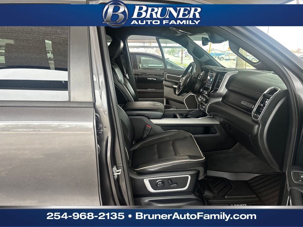 Quick Order Package 25H Laramie. Laramie Level II Equipment Group: Remote Tailgate Release; Harman/kardon 19 Speaker Premium Sound; Auto High Beam Headlamp Control; Blind Spot and Cross Path Detection; Rain Sensitive Windshield Wipers; ParkSense Front/rear Park Assist with Stop; Wireless Charging Pad; Foam Bottle Insert (door Trim Panel); 2nd Row in Floor Storage Bins; Uconnect 5 Navigation Radio with 8.4" Display. Night Edition: Twill Film Appliques; Leather Trimmed Bucket Seats; Accent Color Premium Power Mirrors; Exterior Mirrors with Supplemental Signals; Black Headlamp Bezels; Sport Performance Hood; Body Color Door Handles; Exterior Mirrors Courtesy Lamps; 22" X 9" Forged Aluminum Wheels; Exterior Mirrors with Heating Element; MOPAR Black Tubular Side Steps; Auto Dim Exterior Driver Mirror; Black Exterior Truck Badging; Anti-Spin Differential Rear Axle; Exterior Mirrors with Memory; Black Interior Accents; Dual Exhaust with Black Tips; Power-Folding Mirrors; Body Color Front Bumper; Convex Wide-Angle Mirror Insert; Grille Surround 3 Black Texture 2 Black; Body Color Rear Bumper with Step Pads; Black Painted Exterior Mirrors Caps. 22" X 9" Forged Aluminum Wheels. Leather Trimmed Bucket Seats. Uconnect 5 Navigation Radio with 8.4" Display. Anti-Spin Differential Rear Axle. ParkSense Front/rear Park Assist with Stop. Granite Crystal Met CC. MOPAR Front and Rear Rubber Floor Mats. **Equipment listed is based on original vehicle build and subject to change. Please confirm the accuracy of the included equipment by calling the dealer prior to purchase.**