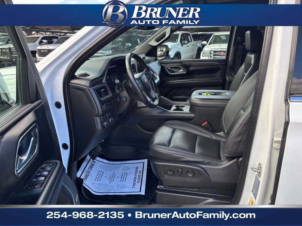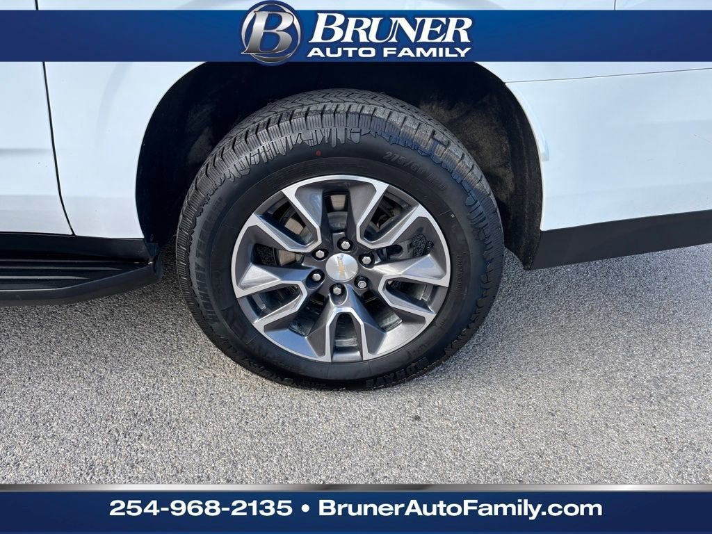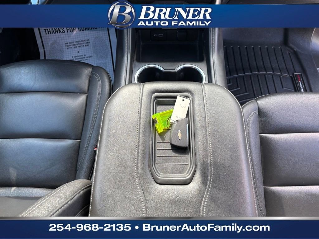 Driver Alert Package (Lane Change Alert w/Side Blind Zone Alert and Rear Cross Traffic Alert), License Plate Front Mounting Package, LT Signature Plus Package (Dual-Pane Power Panoramic Sunroof), Luxury Package (2nd Row Pwr Release 60/40 Split-Folding Bench Seat, 3rd Row 60/40 Power-Folding Split-Bench, HD Surround Vision, Heated 2nd Row Outboard Seats, Heated Steering Wheel, Memory Settings, Outside Heated Power-Adjustable Mirrors, Power Tilt & Telescopic Steering Column, and Rear Pedestrian Alert), Preferred Equipment Group 1LT (10-Way Power Driver & Passenger Seat Adjusters, 1st & 2nd Row Color-Keyed Carpeted Floor Mats, Auto-Dimming Inside Rear-View Mirror, Bose 9-Speaker Stereo Audio System Feature, Bright Front & Rear Door Sill Plates, Color-Keyed Carpeting Floor Covering, Driver & Front Outboard Passenger Airbags, Enhanced Driver Information Center, Floor Console w/Storage Area, Hands-Free Rear Power Programmable Liftgate, Heated Driver & Front Passenger Seats, Infotainment Display, LED Daytime Running Lamps, Memory Settings For Driver, Remote Start, SiriusXM Radio w/360L, Universal Home Remote, Wireless Charging, and Wrapped Steering Wheel), Texas Edition (Texas Edition Badging), Chevrolet Certified Pre-Owned Certified, 3.23 Rear Axle Ratio, 3rd row seats: split-bench, 4-Wheel Disc Brakes, 9 Speakers, ABS brakes, Air Conditioning, Alloy wheels, AM/FM radio: SiriusXM with 360L, Apple CarPlay/Android Auto, Auto High-beam Headlights, Auto-dimming Rear-View mirror, Automatic temperature control, Brake assist, Bumpers: body-color, Compass, Delay-off headlights, Driver door bin, Driver vanity mirror, Dual front impact airbags, Dual front side impact airbags, Electronic Stability Control, Emergency communication system: OnStar and Chevrolet connected services capable, Four wheel independent suspension, Front & Rear Black Bowtie Emblems (LPO), Front anti-roll bar, Front Bucket Seats, Front Center Armrest, Front dual zone A/C, Front reading lights, Fully automatic headlights, Garage door transmitter, Heated door mirrors, Heated front seats, Illuminated entry, Leather-Appointed Seating, Low tire pressure warning, Memory seat, Navigation System, Not Equipped w/Wireless Charging, Occupant sensing airbag, Outside temperature display, Overhead airbag, Overhead console, Panic alarm, Passenger door bin, Passenger vanity mirror, Power door mirrors, Power driver seat, Power Liftgate, Power passenger seat, Power Release 2nd Row Bucket Seats, Power steering, Power windows, Premium audio system: Chevrolet Infotainment 3 Premium, Premium Smooth Ride Suspension, Radio: Chevrolet Infotainment 3 Premium System, Rain sensing wipers, Rear air conditioning, Rear anti-roll bar, Rear reading lights, Rear seat center armrest, Rear window defroster, Rear window wiper, Remote keyless entry, Roof rack: rails only, Security system, Speed control, Speed-sensing steering, Split folding rear seat, Spoiler, Steering wheel mounted audio controls, Tachometer, Te