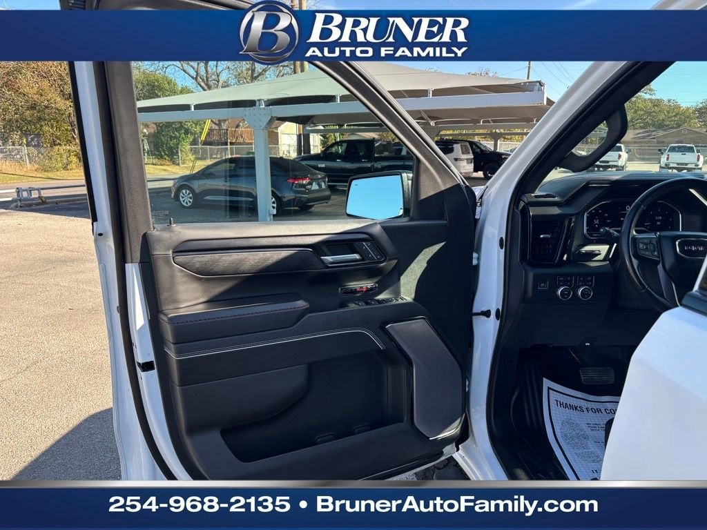 Certified. 2023 GMC Sierra 1500 AT4X Summit White 4WD 10-Speed Automatic EcoTec3 6.2L V8 10-Speed Automatic, 4WD, Obsidian Rush Leather. CARFAX One-Owner. Priced below KBB Fair Purchase Price! Odometer is 5690 miles below market average!This 2023 GMC Sierra 1500 is located at our STEPHENVILLE location where we have a wide variety of QUALITY new and used vehicles. Bruner Auto Family, Your Family Since 1928!GMC Certified Pre-Owned Details:* Transferable Warranty* 24 months/24,000 miles (whichever comes first) Certified Pre-Owned Scheduled Maintenance Plan and 3 days/150 miles (whichever comes first) Vehicle Exchange Program. SiriusXM 3-month trial subscription* Roadside Assistance* Limited Warranty: 12 Month/12,000 Mile (whichever comes first) from certified purchase date* 172 Point Inspection* Powertrain Limited Warranty: 72 Month/100,000 Mile (whichever comes first) from original in-service date* Vehicle History* Warranty Deductible: $0Preferred Equipment Group 4SG (120-Volt Bed Mounted Power Outlet, 120-Volt Instrument Panel Power Outlet, 2 Charge/Data USB Ports Inside Center Console, 2 Type-C Charge-Only Rear USB Ports, 2 USB Ports, Bed View Camera, Bose Premium Series w/12-Speaker System, Color-Keyed Carpeting Floor Covering, Compass, Deep-Tinted Glass, Driver-Selectable Full-Locking Front Differential, Driver-Selectable Full-Locking Rear Differential, Electric Rear-Window Defogger, Electrical Steering Column Lock, Floor-Mounted Center Console, Front Prem Floor Liners w/Removable Carpet Insert, Front Rainsensing Wipers, Gloss Black Header w/Drk Nickel Grille Insert Bars, GMC Connected Access Capable, HD Surround Vision, Heated 2nd Row Outboard Seats, Heated Driver & Front Outboard Passenger Seating, Heavy-Duty Air Filter, Hill Descent Control, Hitch Guidance w/Hitch View, In-Vehicle Trailering App, Integrated Trailer Brake Controller, Keyless Open & Start, LED Cargo Area Lighting, Multicolor 15 Diagonal Head-Up Display, MultiPro Audio System by Kicker (LPO), OnStar & GMC Connected Services Capable, Perimeter Lighting, Power Door Locks, Power Front Passenger Windows w/Express Up/Down, Power Front Windows w/Driver Express Up/Down, Power Rake & Telescoping Steering Column, Power Rear Windows w/Express Down, Power Sliding Rear Window w/Rear Defogger, Power Sunroof, Push Button Start, Rear Cross Traffic Braking, Rear Pedestrian Detection, Rear Prem Floor Liners w/Removable Carpet Insert, Rear Wheelhouse Liners, Remote Vehicle Starter System, SiriusXM w/360L, Spray-On Pickup Bed Liner w/AT4X Logo, Steering Wheel Audio Controls, Theft Deterrent System (Unauthorized Entry), Trailer Camera Provisions, Trailer Side Blind Zone Alert, Trailer Tire Pressure Monitor System, Ultrasonic Front & Rear Park Assist, Universal Home Remote, Ventilated Driver & Front Passenger Seats, Wi-Fi Hotspot Capable, Wireless Charging, and Wireless Phone Projection), Trailering Package (Hitch Guidance), GMC Certified Pre-Owned Certified, 10-Speed Automatic, 4WD, Obsidian Rush Leather, 12 Speakers, 16-Way Power Driver Seat Adjuster w/Lumbar, 16-Way Power Passenger Seat Adjuster w/Lumbar, 3.23 Rear Axle Ratio, 4-Wheel Disc Brakes, ABS brakes, Air Conditioning, Alloy wheels, AM/FM radio, Apple CarPlay/Android Auto, Auto High-beam Headlights, Auto-dimming door mirrors, Auto-dimming Rear-View mirror, Automatic Emergency Braking, Automatic temperature control, Brake assist, Buckle to Drive, Delay-off headlights, Driver door bin, Driver Memory, Driver vanity mirror, Dual front impact airbags, Dual front side impact airbags, Electronic Stability Control, Emergency communication system: OnStar and GMC connected services capable, Following Distance Indicator, Forward Collision Alert, Front anti-roll bar, Front Bucket Seats, Front Center Armrest, Front dual zone A/C, Front fog lights, Front License Plate Kit, Front Pedestrian Braking, Front reading lights, Front wheel independent suspension,