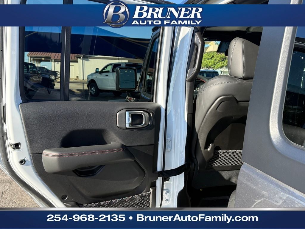 Convenience Group (Heated Front Seats, Heated Steering Wheel, and Remote Start System), Quick Order Package 24R Rubicon, Safety Group (Auto High Beam Headlamp Control, Blind Spot & Cross Path Detection, and ParkSense Rear Park Assist System), 12.3 Touchscreen Display, 4-Wheel Disc Brakes, 4.10 Rear Axle Ratio, 8 Speakers, 97 MPH Vehicle Max Speed Calibration, ABS brakes, Air Conditioning, Alloy wheels, AM/FM radio: SiriusXM, Apple CarPlay, Apple CarPlay/Android Auto, Automatic temperature control, Aux Battery, Black 3-Piece Hard Top, Brake assist, Cloth Low-Back Bucket Seats, Compass, Connectivity - US/Canada, Delay-off headlights, Disassociated Touchscreen Display, Driver door bin, Driver vanity mirror, Dual front impact airbags, Dual front side impact airbags, Electronic Stability Control, Emergency communication system: Jeep Connect, Freedom Panel Storage Bag, Front anti-roll bar, Front Bucket Seats, Front Center Armrest w/Storage, Front dual zone A/C, Front fog lights, Front License Plate Bracket, Front reading lights, Fully automatic headlights, Google Android Auto, Heated door mirrors, Illuminated entry, Integrated Center Stack Radio, Integrated roll-over protection, Integrated Voice Command w/Bluetooth®, Low tire pressure warning, MOPAR All-Weather Floor Mats, No Soft Top, Non-Lock Fuel Cap w/o Discriminator, Occupant sensing airbag, Outside temperature display, Overhead airbag, Panic alarm, ParkView Rear Back-Up Camera, Passenger door bin, Passenger vanity mirror, Performance Suspension, Power door mirrors, Power steering, Power windows, Radio data system, Radio: Uconnect 5 w/12.3 Display, Rear anti-roll bar, Rear reading lights, Rear Window Defroster, Rear Window Wiper/Washer, Remote keyless entry, Security system, Speed control, Split folding rear seat, Steering wheel mounted audio controls, Stop-Start Dual Battery System, Tachometer, Telescoping steering wheel, Tilt steering wheel, Traction control, Trip computer, Variably intermittent wipers, Voltmeter, and Wheels: 17 x 7.5 Machined/Painted Black.
