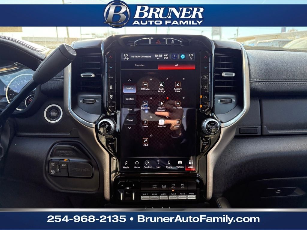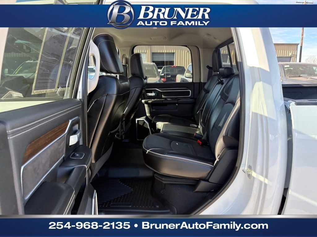 Laramie Level 1 Equipment Group (12 Touchscreen Display, 18 x 8 Polished Aluminum Wheels, 2nd Row In Floor Storage Bins, 4G LTE Wi-Fi Hot Spot, Alexa Built-In, Apple CarPlay, Auto Adjust In Reverse Exterior Mirrors, Auto Dimming Exterior Passenger Mirror, Auto High Beam Headlamp Control, Auto Power-Folding Mirrors, Auto-Dimming Exterior Mirrors, Blind Spot & Cross Path Detection, Center Hub, Chrome Exterior Mirrors, Connected Travel & Traffic Services, Connectivity - US/Canada, Disassociated Touchscreen Display, Exterior Mirrors Courtesy Lamps, Exterior Mirrors w/Heating Element, Exterior Mirrors w/Memory, Exterior Mirrors w/Supplemental Signals, Foam Bottle Insert (Door Trim Panel), For Details Visit DriveUconnect.com, For More Info, Call 800-643-2112, Forward & Reverse Utility Lights, Front LED Fog Lamps, Global Telematics Box Module (TBM), Google Android Auto, GPS Antenna Input, GPS Navigation, HD Radio, Integrated Voice Command w/Bluetooth®, LED Reflector Headlamps, LED Tail Lamps, Mirror Running Lights, Off-Road Information Pages, ParkSense Front/Rear Park Assist System, Power Adjust Mirrors, Power Adjustable Pedals w/Memory, Power Heat Fold Memory Telescopic Mirrors, Power Telescoping Mirrors, Power-Adjustable Convex Aux Mirrors, Radio: Uconnect 5 Nav w/12.0 Display, Rain Sensitive Windshield Wipers, Rear Power Sliding Window, Rear Window Defroster, Remote Tailgate Release, Selectable Tire Fill Alert, SiriusXM Radio Service, SiriusXM w/360L, and Trailer Tow Pages), Protection Group, Quick Order Package 21H Laramie, Towing Technology Group (CTR Stop Lamp w/Cargo View Camera, Surround View Camera System, and Trailer Reverse Guidance), 10 Speakers, 115V Auxiliary Rear Power Outlet, 2 Way Rear Headrest Seat, 220 Amp Alternator, 3.73 Axle Ratio, 4 Way Front Headrests, 4-Wheel Disc Brakes, 50 Gallon Fuel Tank, 5th Wheel/Gooseneck Towing Prep Group, 6000# Front Axle w/Hub Ext, 8.4 Touchscreen Display, ABS brakes, Active Noise Control System, Air Conditioning, Alloy wheels, AM/FM radio: SiriusXM with 360L, Apple CarPlay/Android Auto, Auto-dimming Rear-View mirror, Automatic temperature control, Box & Rear Fender Clearance Lamps, Brake assist, Bumpers: body-color, Clearance Lamps, Compass, Dash Pass Thru Wire Circuits, Delay-off headlights, Driver door bin, Driver vanity mirror, Dual front impact airbags, Dual front side impact airbags, Dual Rear Wheels, Electronic Stability Control, Electronically Controlled Throttle, Engine Block Heater, Folding Flat Load Floor Storage, Front anti-roll bar, Front Center Armrest w/Storage, Front dual zone A/C, Front License Plate Bracket, Front reading lights, Front Seat Back Map Pockets, Fully automatic headlights, Garage door transmitter, Heated door mirrors, Heated Front Seats, Heated front seats, Heated Steering Wheel, Heated steering wheel, High Back Seats, I/P Mounted Auxiliary Switches, Illuminated entry, Integrated Center Stack Radio, Leather steering wheel, Leather Trim 40/20/40 Bench Seat, Low tire pressure warning, Manufacturer's Statement of Origin, Navigation System, Occupant sensing airbag, Outside temperature display, Overhead airbag, Overhead console, Panic alarm, ParkView Rear Back-Up Camera, Passenger door bin, Passenger vanity mirror, Power 8-Way Adjustable Passenger Seat, Power Adjust 8-Way Driver Seat, Power door mirrors, Power driver seat, Power passenger seat, Power steering, Power windows, Radio data system, Radio: Uconnect 5 Nav w/8.4 Display, Rear 60/40 Folding Seat, Rear reading lights, Rear seat center armrest, Rear step bumper, Remote keyless entry, Security system, Speed control, Split folding rear seat, Steering wheel mounted audio controls, Tachometer, Tilt steering wheel