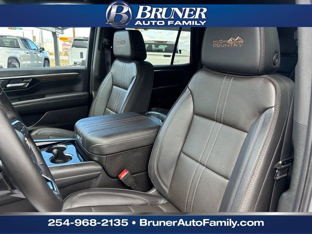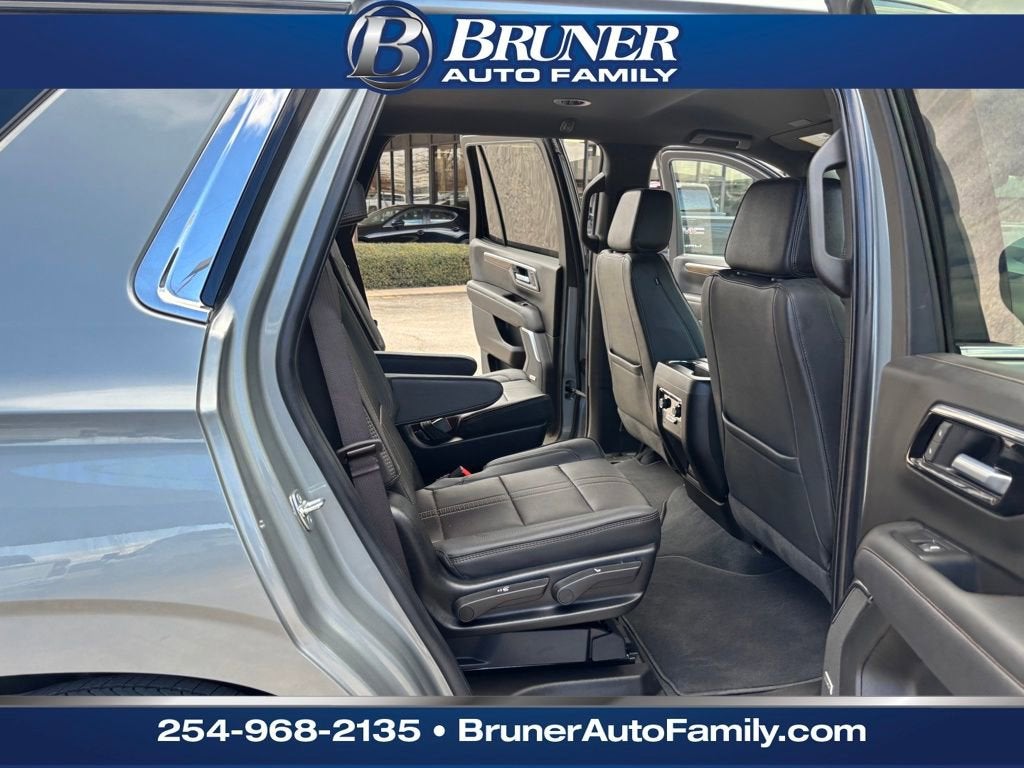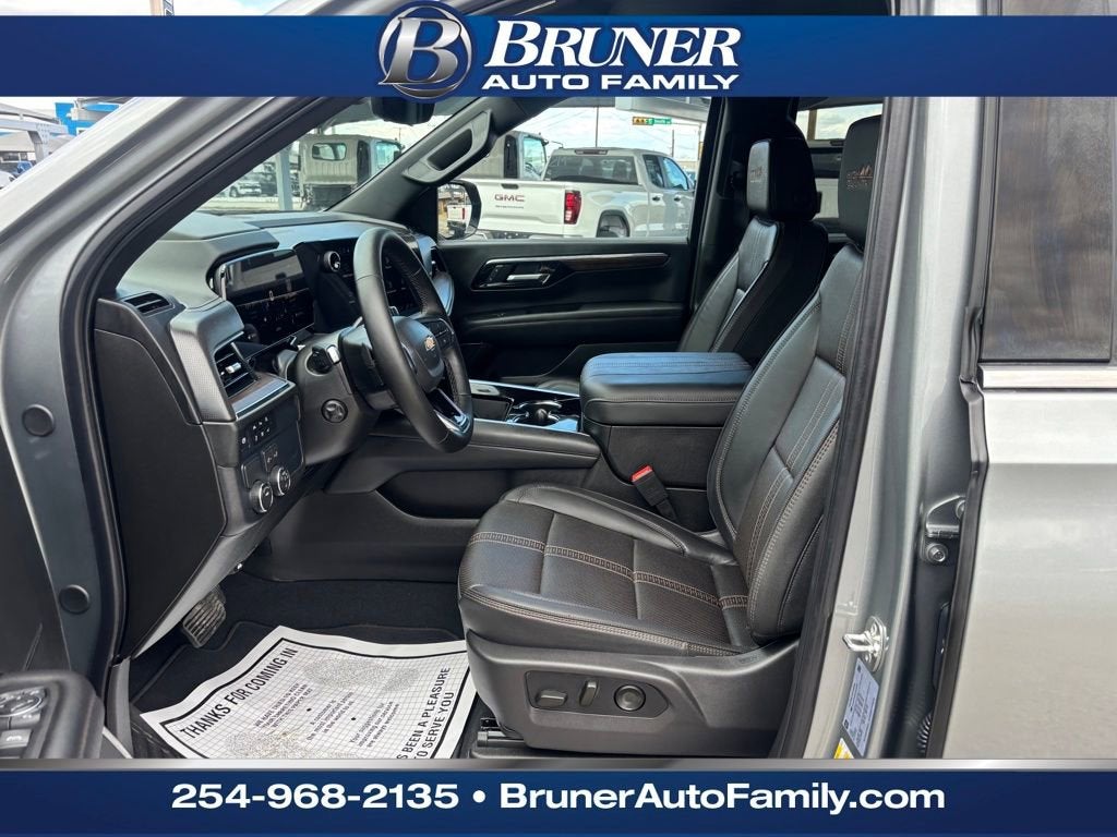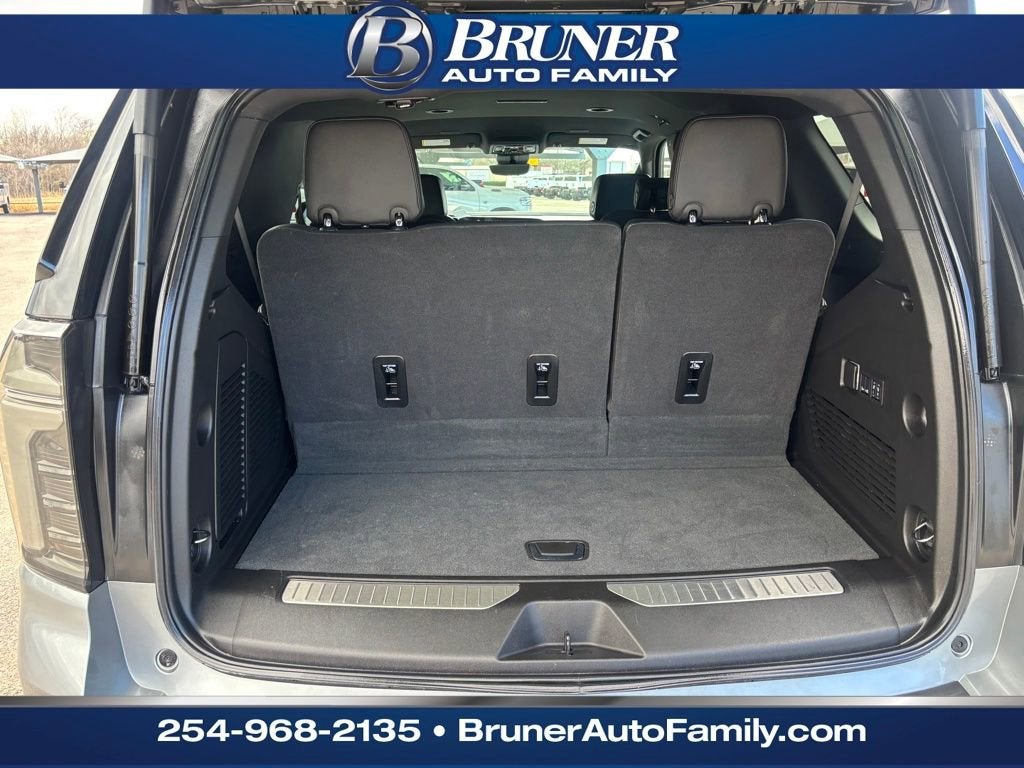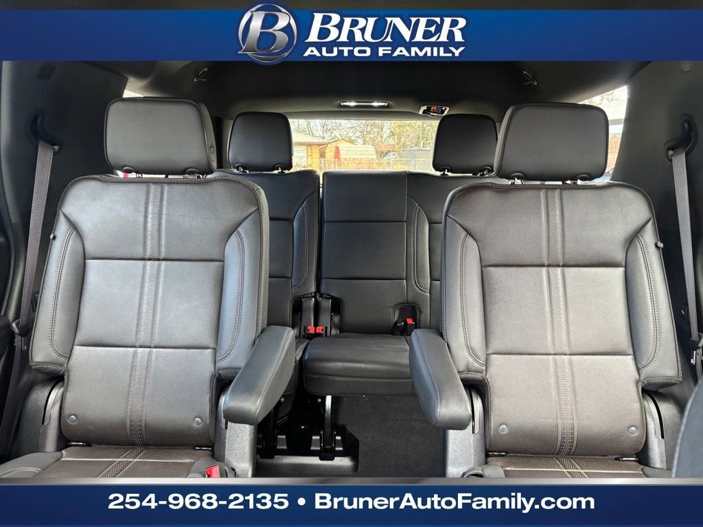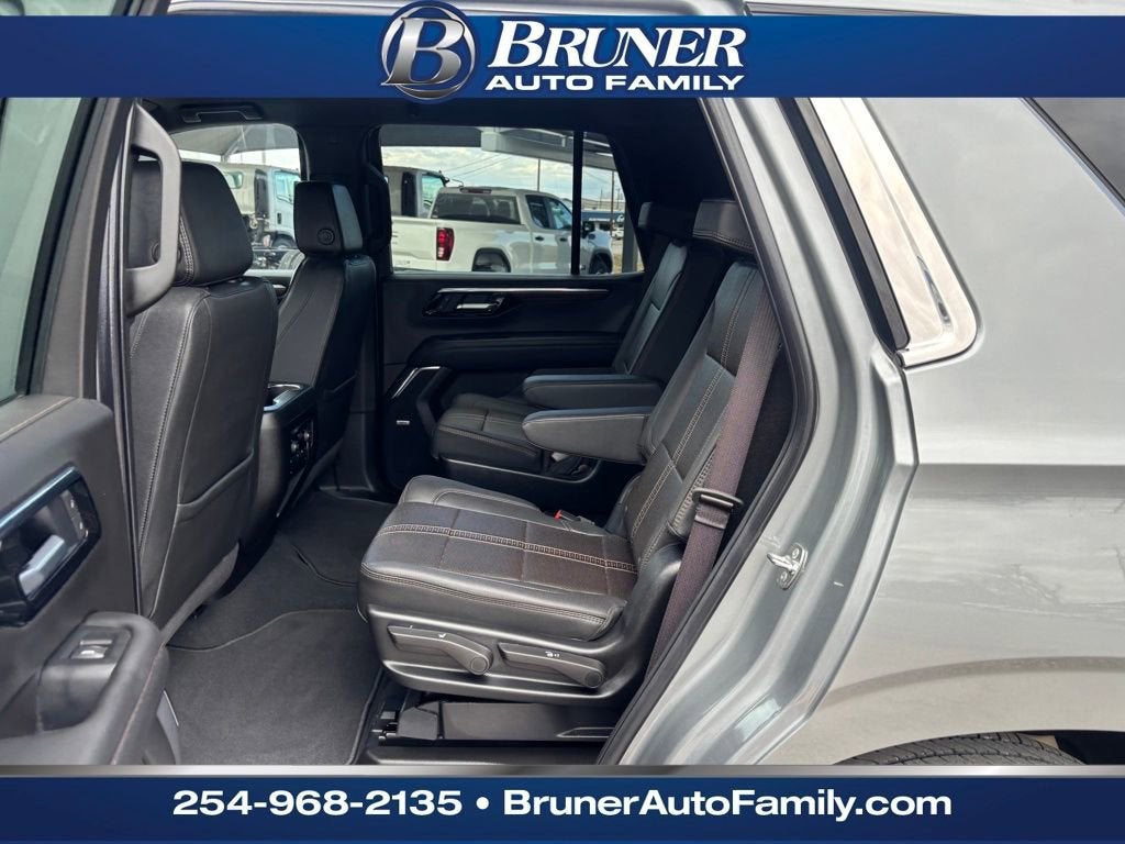 License Plate Front Mounting Package, Preferred Equipment Group 3LZ (15 Diagonal Multi-Color Head-Up Display, 1st and 2nd Row Color-Keyed Carpeted Floor Mats, 3-Spoke Wrapped Steering Wheel, 3rd Row 60/40 Power-Folding Split-Bench Seat, Bose 10-Speaker Centerpoint Surround Audio System Feature, Bright Front and Rear Door Sill Plates, Chrome Door Handles with Body-Color Strip, Color-Keyed Carpeting Floor Covering, Dual Exhaust System, Floor Console, Front Bucket Seats, Front LED Fog Lamps, Frontal Driver and Outboard Passenger Airbags, Heated 2nd Row Outboard Seats, Heated Steering Wheel, Inside Rearview Auo-Dimming Rear Camera Mirror, Interior Camera, Key Card, LED Headlamps with LED Daytime Running Lamps, LED Tail Lamps, Magnetic Ride Control Suspension, Memory Settings, Outside Heated Power-Adjustable Mirrors, Power Release 2nd Row Bucket Seats, Power Tilt and Telescopic Steering Column, Rear Power Liftgate, Remote Start, Set of 4 Wheel Locks, SiriusXM with 360L Trial Subscription, Universal Home Remote, Wheels: 22 x 9 Bright Machined Aluminum, and Wireless Phone Charging), Chevrolet Certified Pre-Owned Certified, Black Leather, 1.5 KW Heater/Defrost Air System, 10 Speakers, 250-Amp Alternator, 3.23 Rear Axle Ratio, 3rd row seats: split-bench, 4-Way Power Driver Lumbar Seat Adjuster, 4-Way Power Front Passenger Lumbar Seat Adjuster, 4-Wheel Disc Brakes, 8-Way Power Driver Seat Adjuster, 8-Way Power Front Passenger Seat Adjuster, 850 Cold-Cranking Amps Battery, ABS brakes, Adaptive suspension, Air Conditioning, Alloy wheels, AM/FM radio: SiriusXM with 360L, Apple CarPlay/Android Auto, Auto High-beam Headlights, Auto-dimming door mirrors, Auto-dimming Rear-View mirror, Auto-leveling suspension, Automatic temperature control, Brake assist, Bumpers: body-color, Compass, Delay-off headlights, Diesel B20 Fuel, Driver and Front Passenger Heated and Ventilated Seats, Driver door bin, Driver vanity mirror, Dual front impact airbags, Dual front side impact airbags, Electronic Stability Control, Emergency communication system: OnStar and Chevrolet connected services capable, Engine Block Heater, Exterior Parking Camera Rear, Four wheel independent suspension, Front anti-roll bar, Front Center Armrest, Front dual zone A/C, Front fog lights, Front reading lights, Fully automatic headlights, Garage door transmitter, Heads-Up Display, Heated door mirrors, Heated Driver and Front Passenger Seats, Heated front seats, Heated rear seats, Heated steering wheel, Illuminated entry, Low tire pressure warning, Memory seat, Navigation system: Google built-in compatibility (select service plan required, terms and limitations apply), Occupant sensing airbag, Outside temperature display, Overhead airbag, Overhead console, Panic alarm, Passenger door bin, Passenger vanity mirror, Perforated Leather Seat Trim, Power door mirrors, Power driver seat, Power Liftgate, Power passenger seat, Power steering, Power windows, Premium audio system: Chevrol