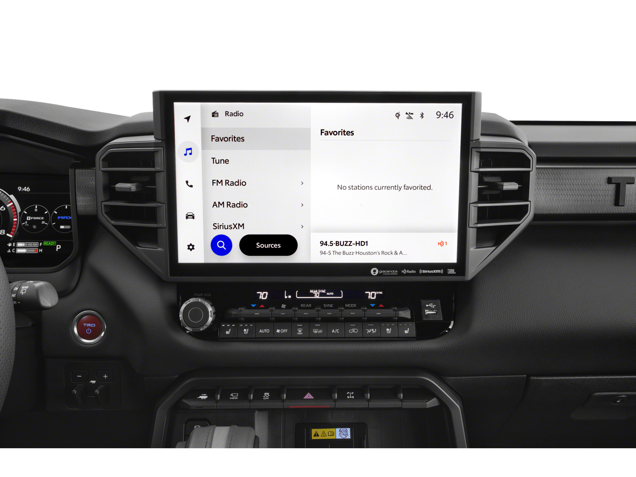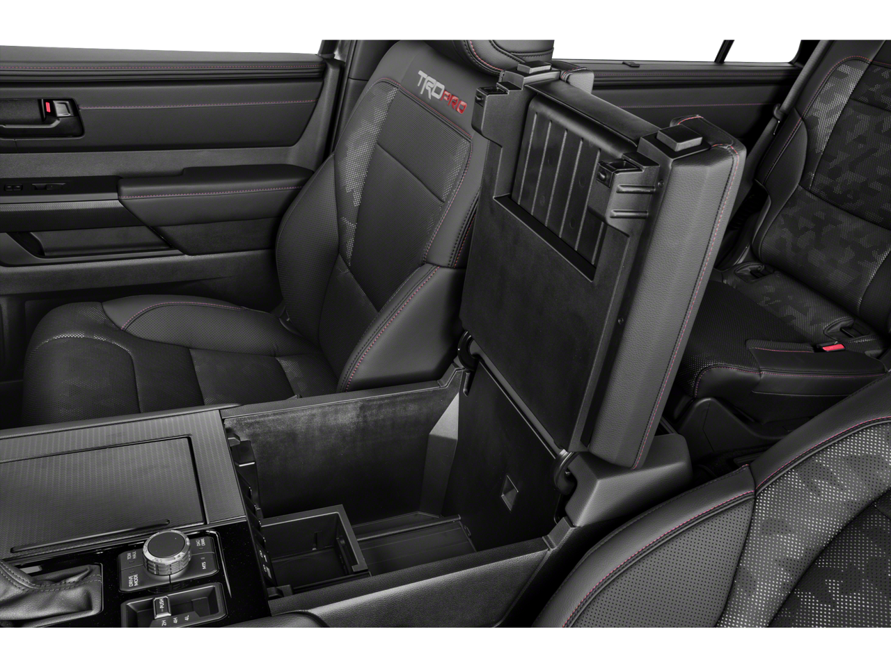 V6 Hybrid, 10-Speed Automatic, 4WD, ABS brakes, Active Cruise Control, Alloy wheels, Compass, Electronic Stability Control, Front dual zone A/C, Heated door mirrors, Heated front seats, Illuminated entry, Low tire pressure warning, Navigation System, Power Liftgate, Power moonroof, Remote keyless entry, Traction control, 14 Speakers, 3rd row seats: split-bench, 4-Wheel Disc Brakes, Air Conditioning, AM/FM radio: SiriusXM, Anti-whiplash front head restraints, Apple CarPlay/Android Auto, Auto High-beam Headlights, Auto-dimming door mirrors, Auto-dimming Rear-View mirror, Automatic temperature control, Brake assist, Bumpers: body-color, Delay-off headlights, Driver door bin, Driver vanity mirror, Dual front impact airbags, Dual front side impact airbags, Emergency communication system: Safety Connect (10-year trial), Exterior Parking Camera Rear, Front anti-roll bar, Front Bucket Seats, Front Center Armrest w/Storage, Front fog lights, Front reading lights, Front wheel independent suspension, Fully automatic headlights, Garage door transmitter: HomeLink, Headlight cleaning, Heated and Ventilated Front Seats, Heated steering wheel, Knee airbag, Leather Shift Knob, Leather steering wheel, Memory seat, Navigation system: Drive Connect (1 year trial) includes Cloud Navigation with real time traffic and Google POI, Occupant sensing airbag, Outside temperature display, Overhead airbag, Overhead console, Panic alarm, Passenger door bin, Passenger vanity mirror, Power door mirrors, Power driver seat, Power passenger seat, Power steering, Power windows, Premium audio system: JBL, Radio: 14 Toyota Audio Multimedia with JBL Premium Audio, Rear air conditioning, Rear reading lights, Rear seat center armrest, Rear window defroster, Rear window wiper, Reclining 3rd row seat, Security system, Speed control, Speed-sensing steering, Split folding rear seat, Spoiler, Sport steering wheel, Steering wheel mounted audio controls, Tachometer, Telescoping steering wheel, Tilt steering wheel, TRD Pro SofTex Seat Trim, Trip computer, Turn signal indicator mirrors, Variably intermittent wipers, Ventilated front seats, Voltmeter, and Wheels: 18 Trd Pro Forged-Aluminum BBS.